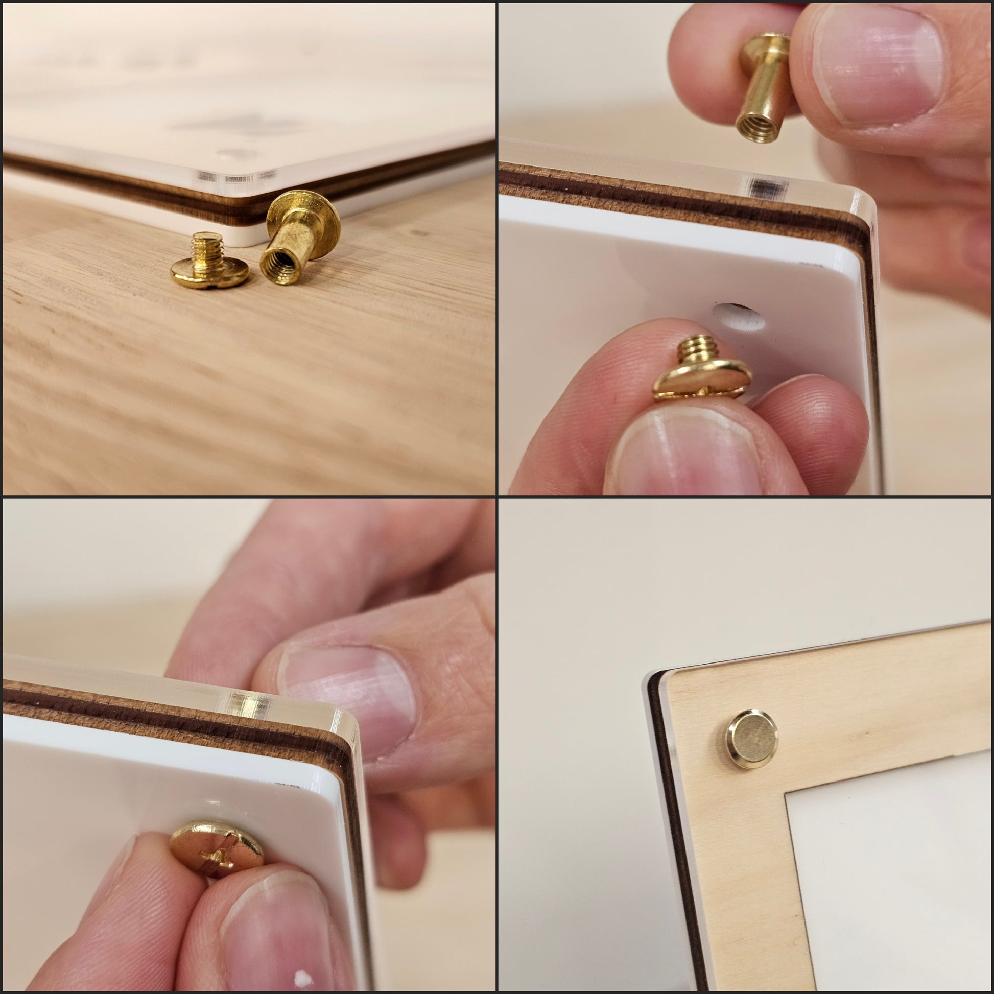 6 Chicago screws are included, to allow you to easily open the frame to add photos and secure it back together again.